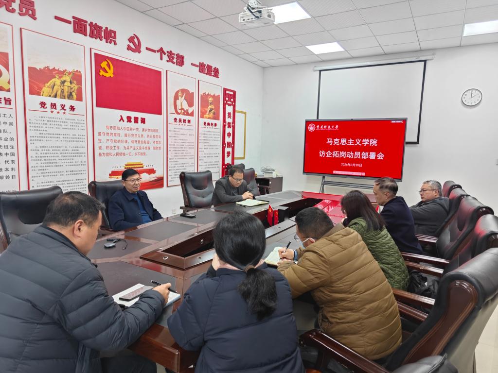 为深入贯彻落实我校关于2026届毕业生就业工作的决策部署,进一步拓宽毕业生就业渠道,深化校企合作,促进毕业生更加充分更高质量就业,3月20日下午,马克思主义学院在博学楼F110召开“访企拓岗”专项行动动员部署会。学院领导班子成员、各支部书记、教研室主任等参加了会议。会议由学院党总支书记范登龙主持。