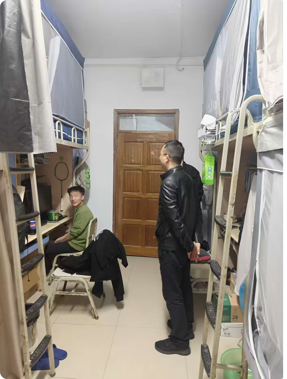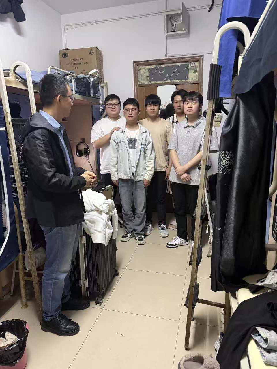 除了学习问题,老师们还关心同学们的生活状况,查看寝室卫生环境,询问饮食、作息情况,提醒大家注意用电安全、养成良好的生活习惯。