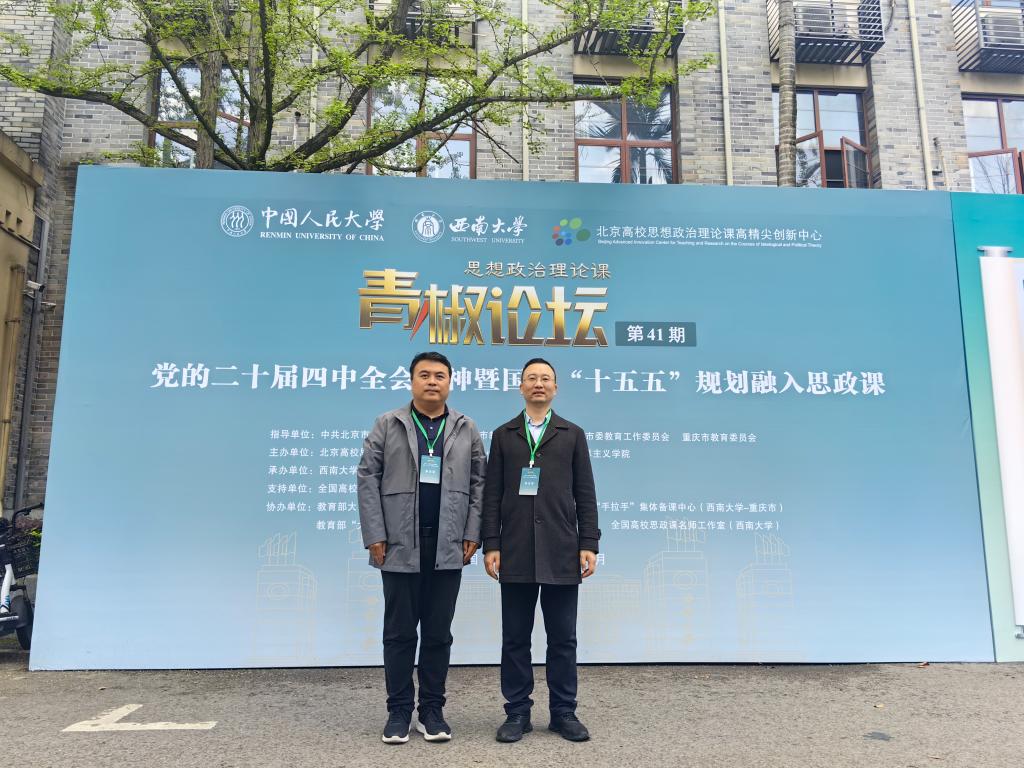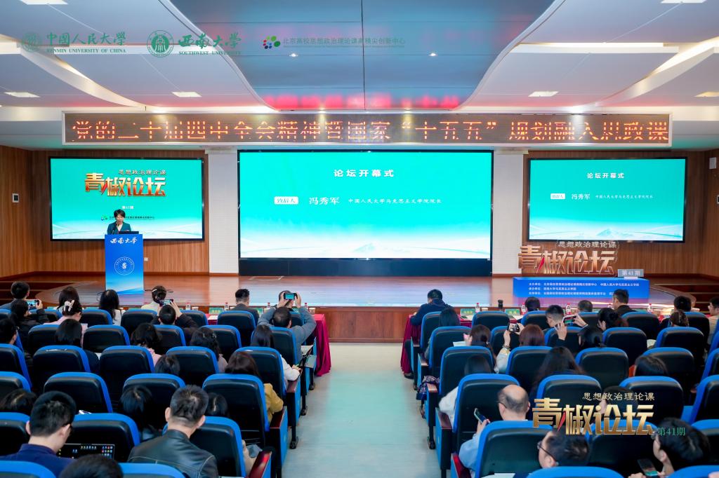 43日,由北京高校思想政治理论课高精尖创新中心,中国人民大学马克思主义学院主办,西南大学马克思主义学院承办的思想政治理论课第41“青椒论坛”在西南大学举办。来自北京大学、中国人民大学、北京师范大学、四川大学、上海交通大学重庆大学、西南大学等90余位思政课教师参加。论坛邀请来自北京、上海、重庆、四川等高校的7位青年才俊和权威专家学者,共同交流展示与集体研讨。