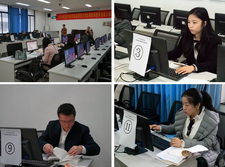 大赛全程仿真模拟重庆市思想政治理论课教师教学技能大赛,分教学设计和现场讲授两个环节。上午9:00至11:00,教学设计环节比赛在厚德楼H414机房举行,参赛教师需要在120分钟内,按照临场给定的题目,结合思想政治理论课五门课程相关章节内容,充分利用现代信息技术现场制作多媒体教学课件。下午1:30至6:00,现场讲授环节比赛在教学主楼B117教室举行,各参赛教师需要从思想政治理论课五门课程中任意选取一门课程,在其授课前1小时从所选课程教材各章中抽一章,在20分钟内开展教学展示。